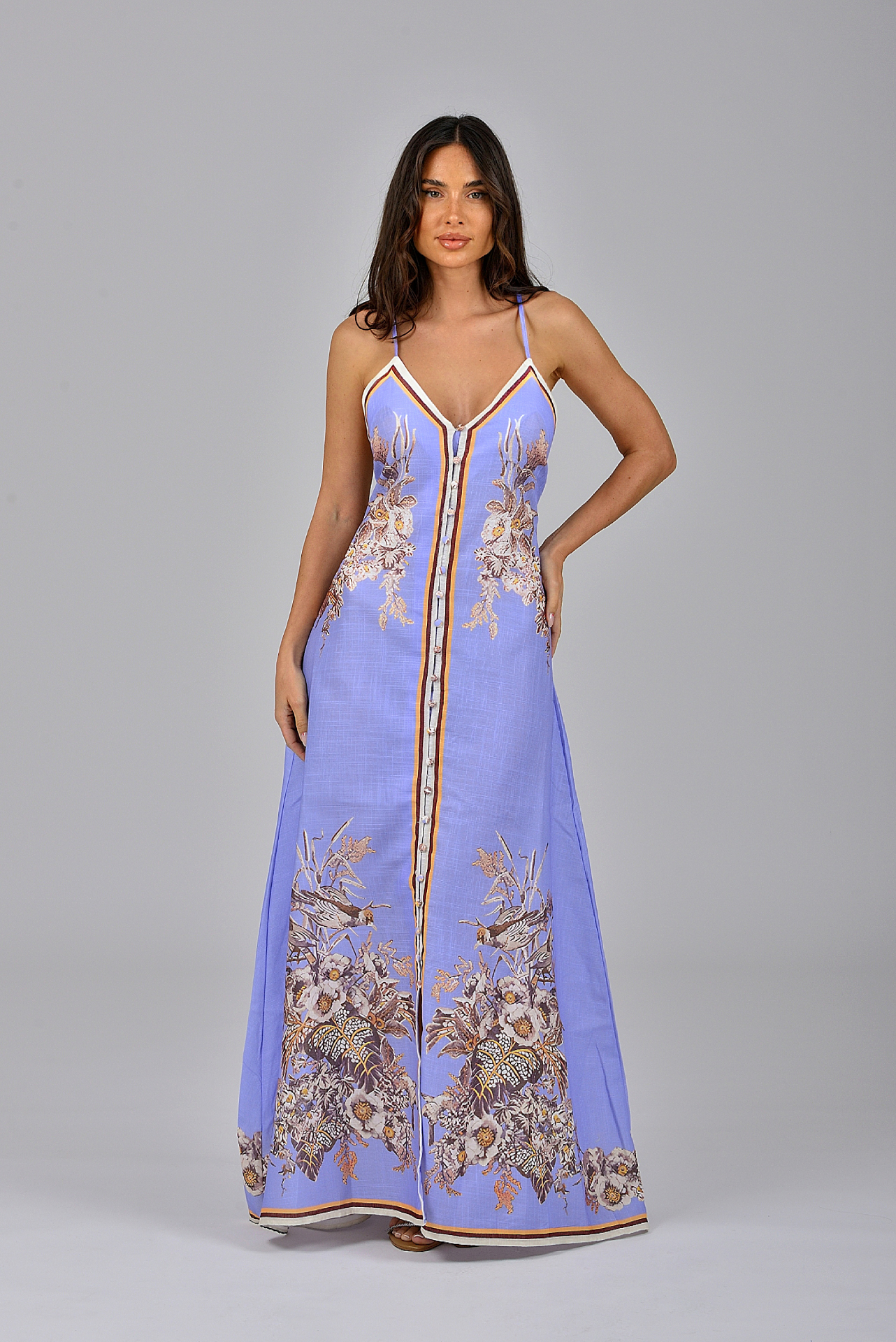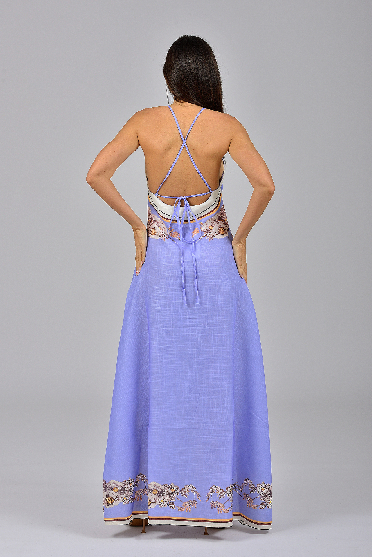Φόρεμα μακρύ σιέλ με πριντ70%cotton 30%polyester