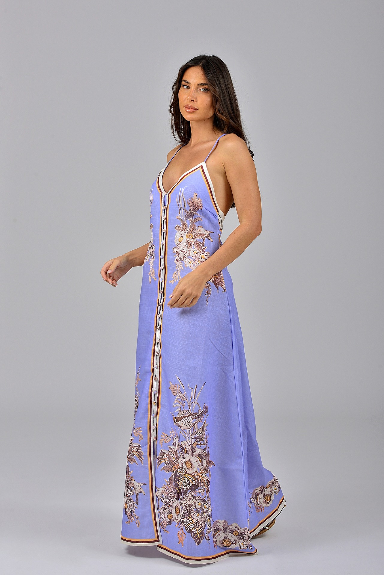 Φόρεμα μακρύ σιέλ με πριντ