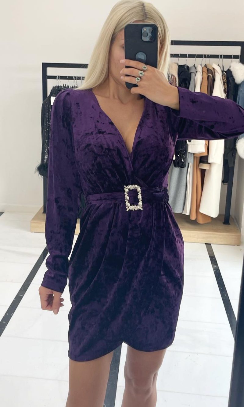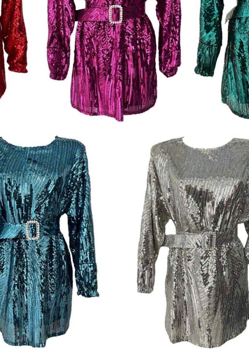 Φόρεμα με ζώνη και παγιέτες σε χρώμα ασημί