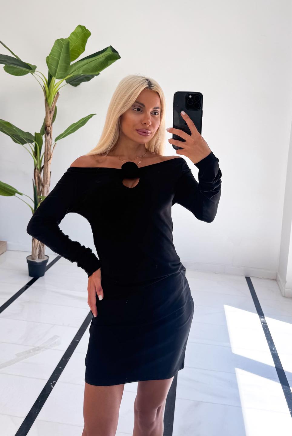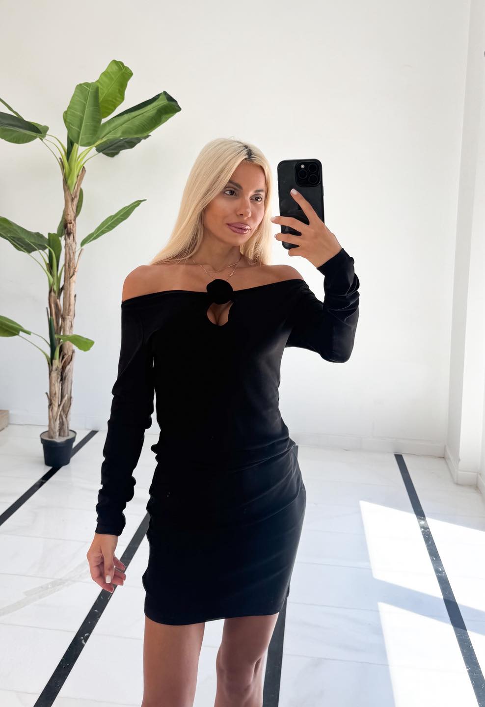 Φόρεμα μαύρο με άνοιγμα εμπρός