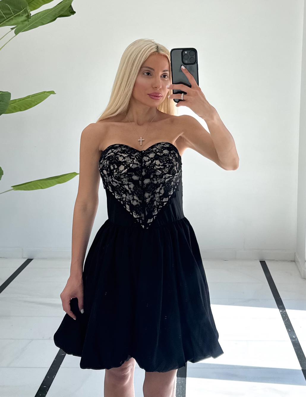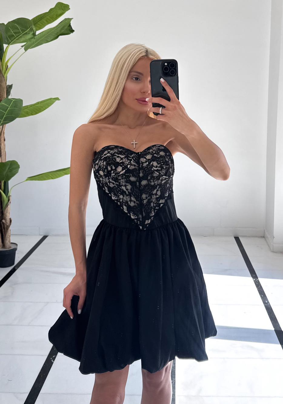 Φόρεμα μαύρο με καπς στο στήθος και ελαστικότητα