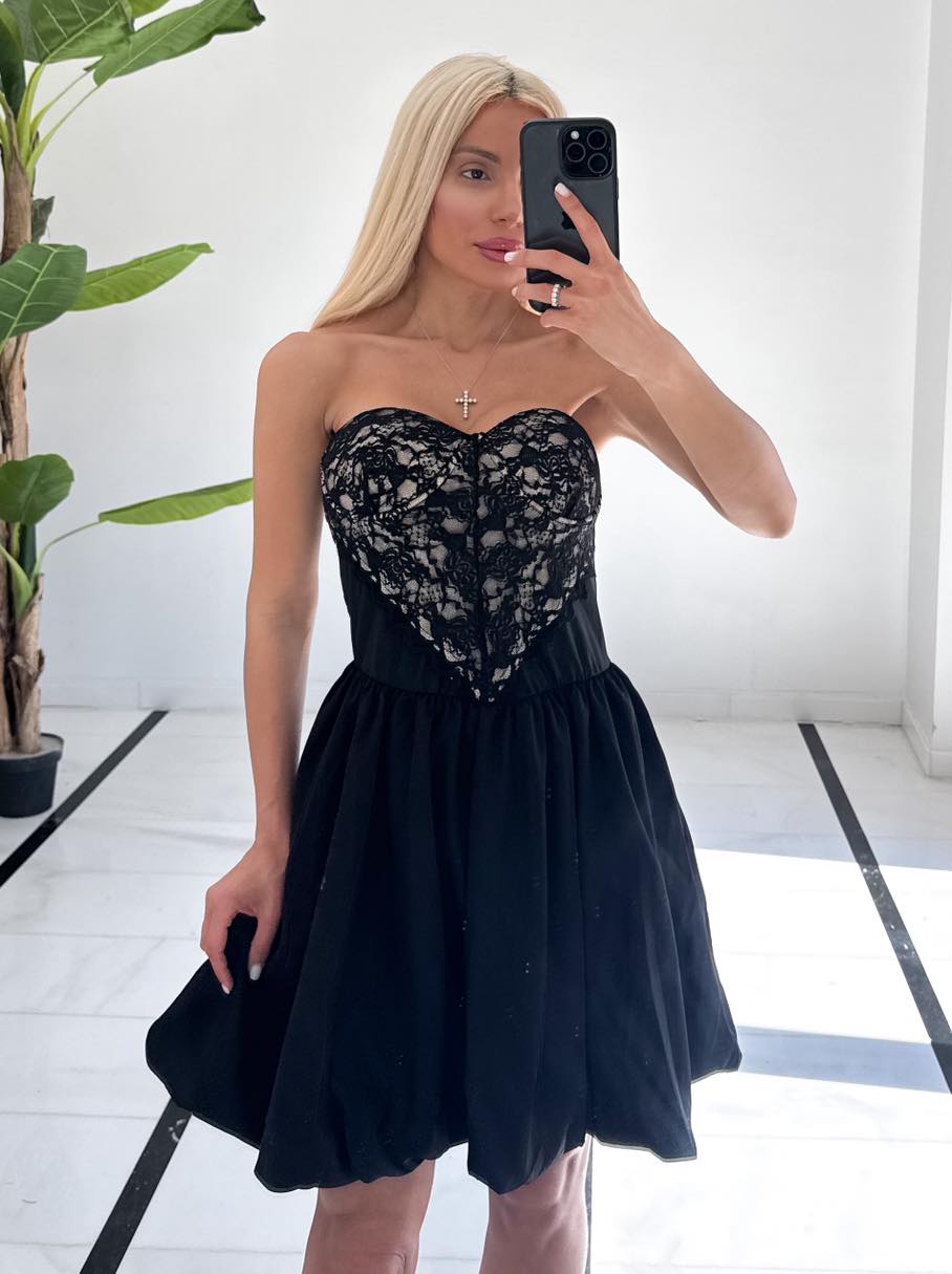 Φόρεμα μαύρο off shoulder με δαντέλα