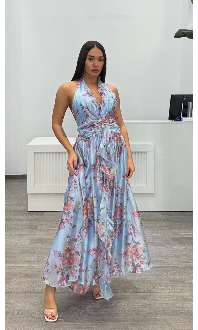 Φόρεμα μπλε - σιέλ με δαντέλα