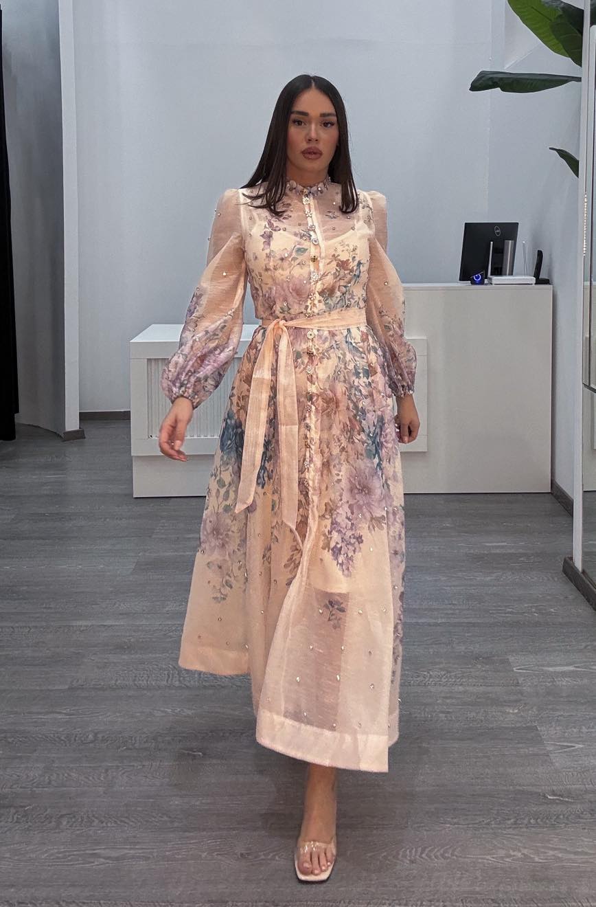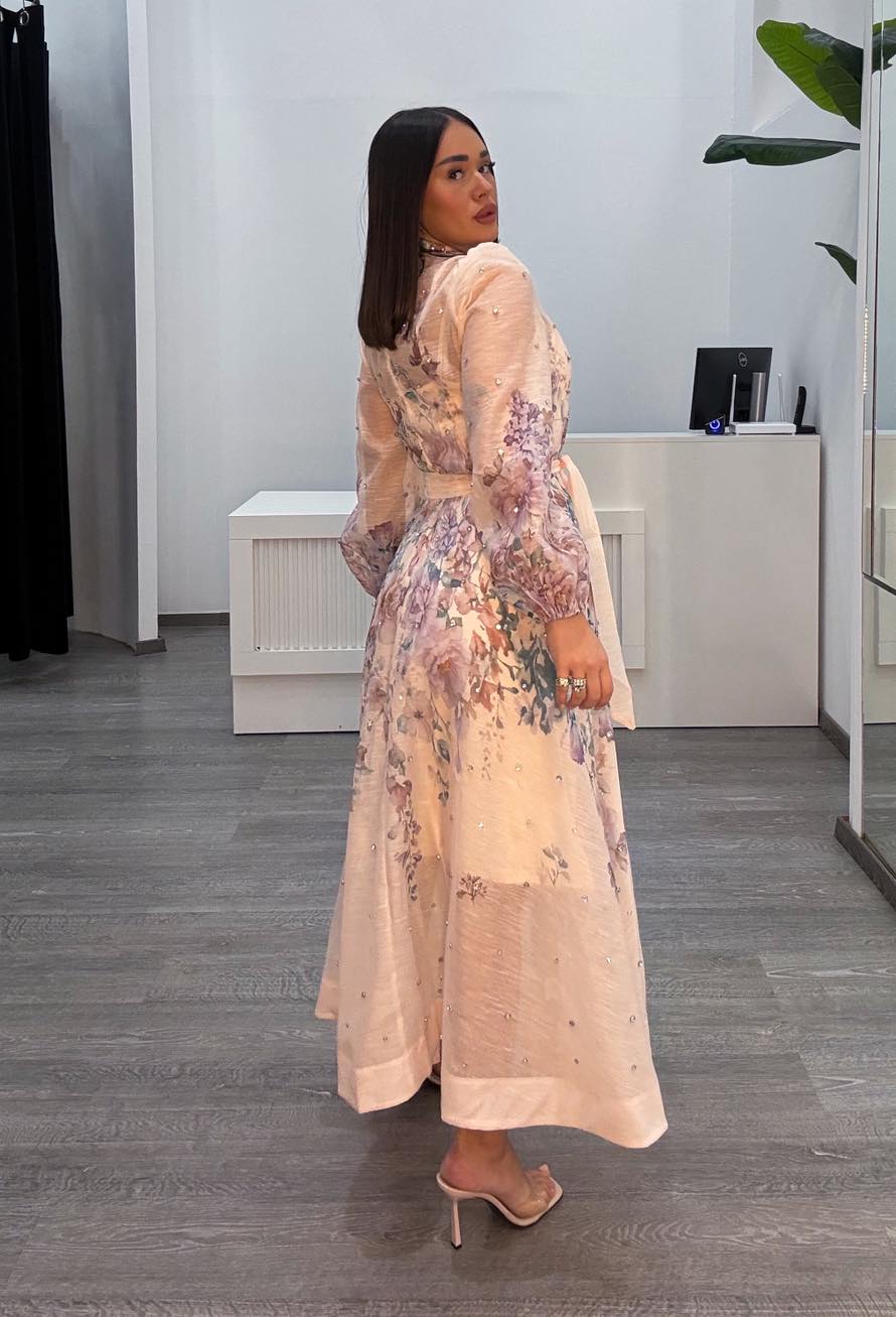 Φόρεμα νουντ με στρας σε όλο το μήκος του φορέματος & στα κουμπιά