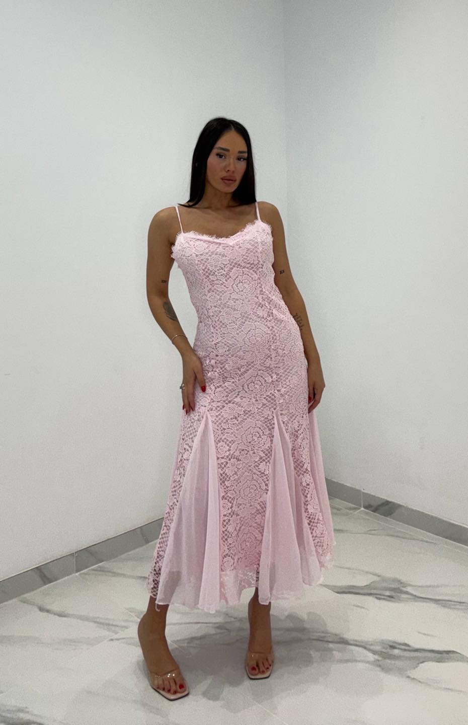 Φόρεμα μακρύ μωβ – λιλά τούλινο με τιράντα