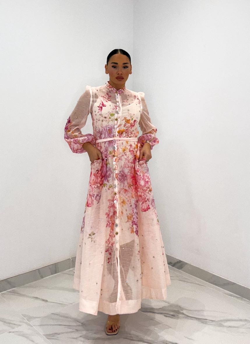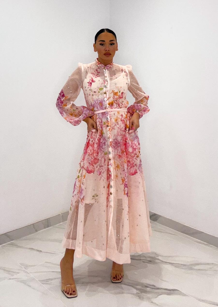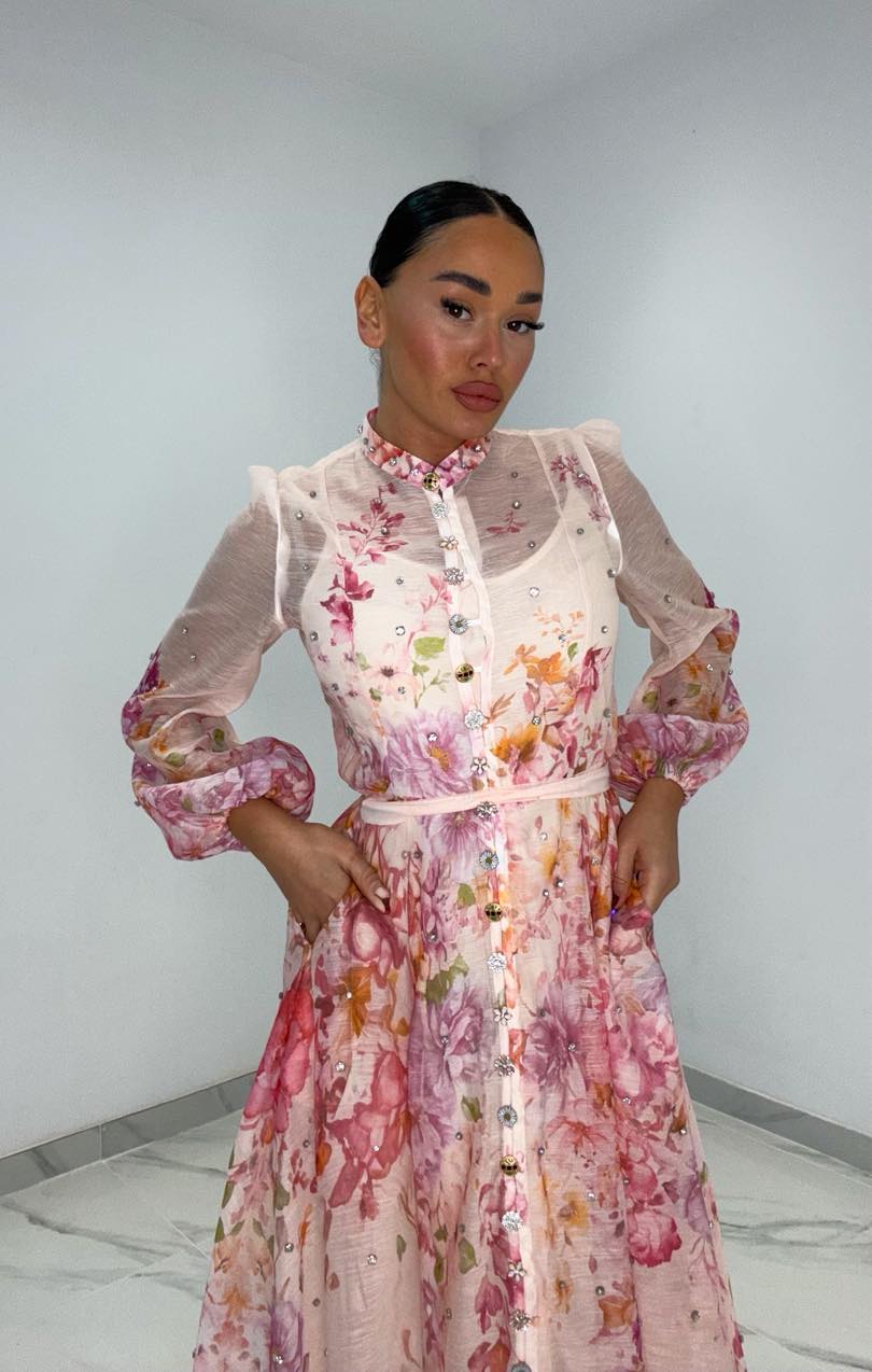 Φόρεμα νουντ με στρας σε όλο το μήκος του φορέματος & στα κουμπιά