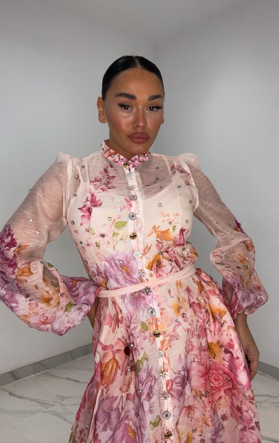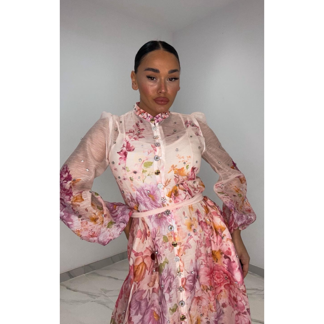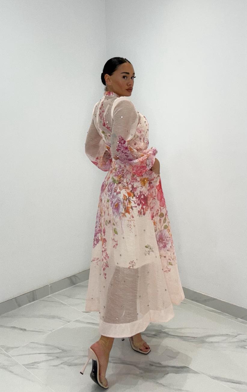 Φόρεμα νουντ με στρας σε όλο το μήκος του φορέματος & στα κουμπιά
