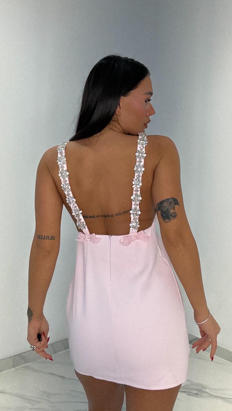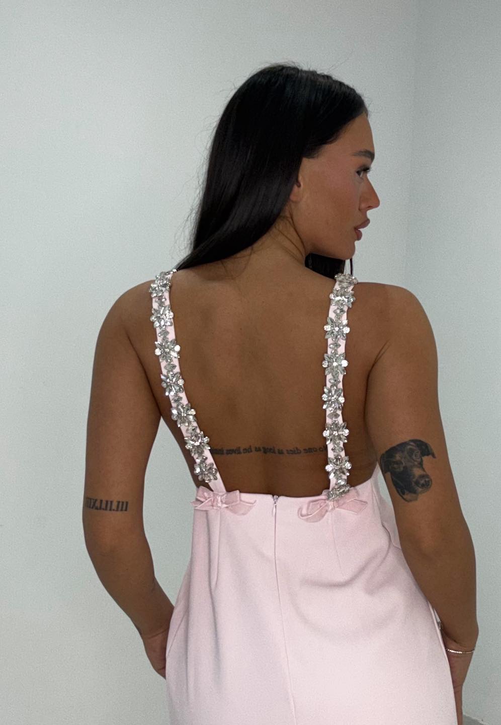 Φόρεμα σατέν νουντ με στρας στις τιράντες