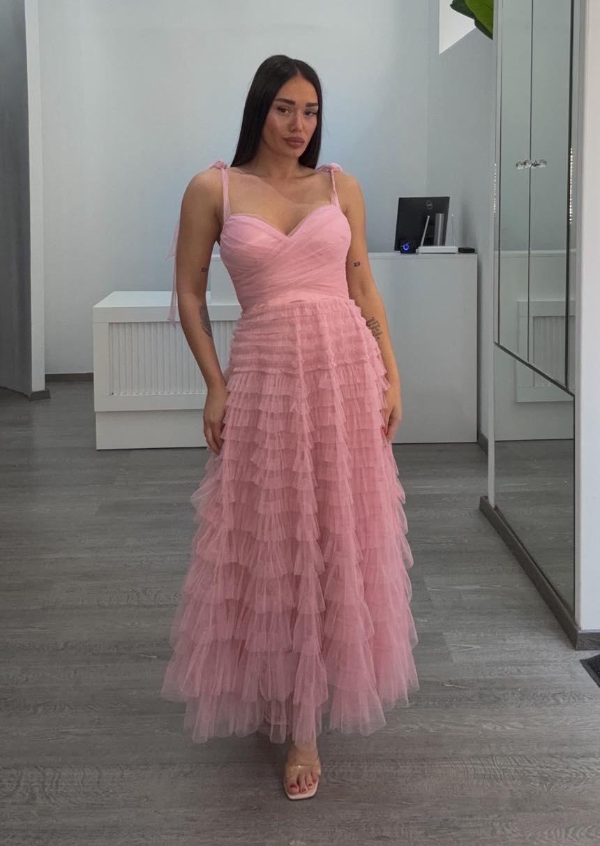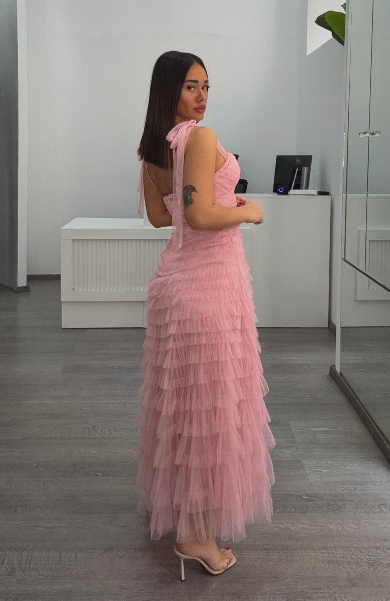 Φόρεμα σατέν νουντ με στρας στις τιράντες