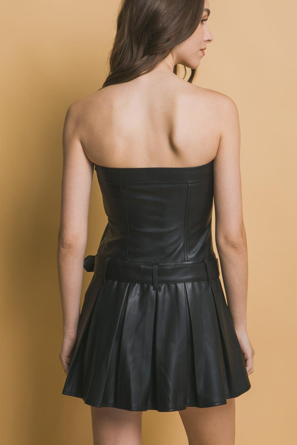 Φόρεμα eco leather μαύρο με ζώνη