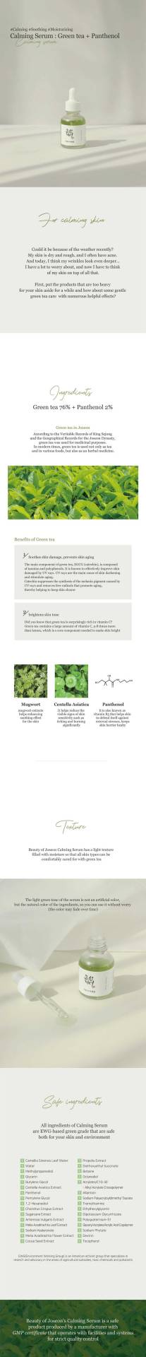 BEAUTY OF JOSEON CALMING SERUM : GREEN TEA + PANTHENOL 30ML