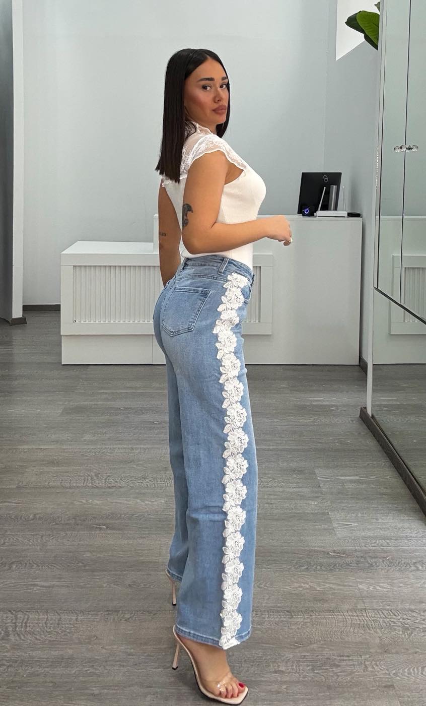 Jean παντελόνι με δαντέλα λουλούδια στο πλάι
