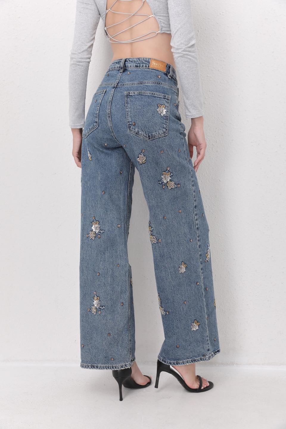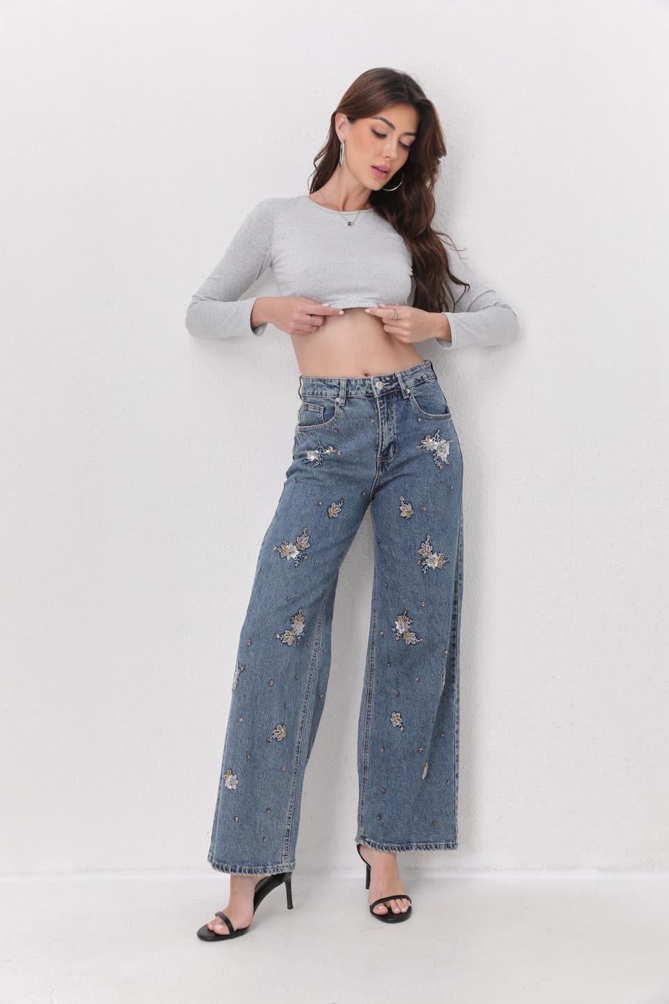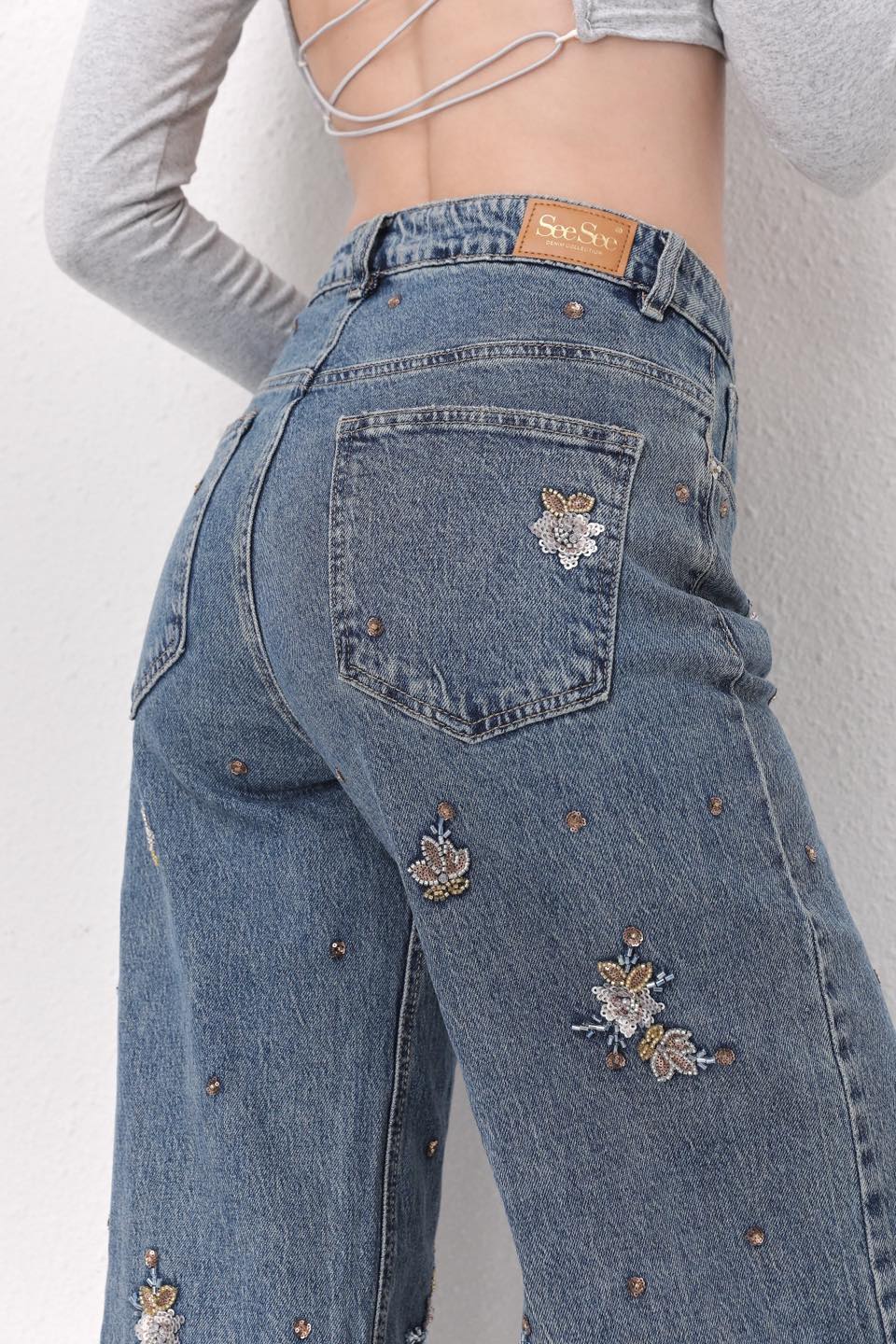 Jean παντελόνι με τριαντάφυλλα και στρας