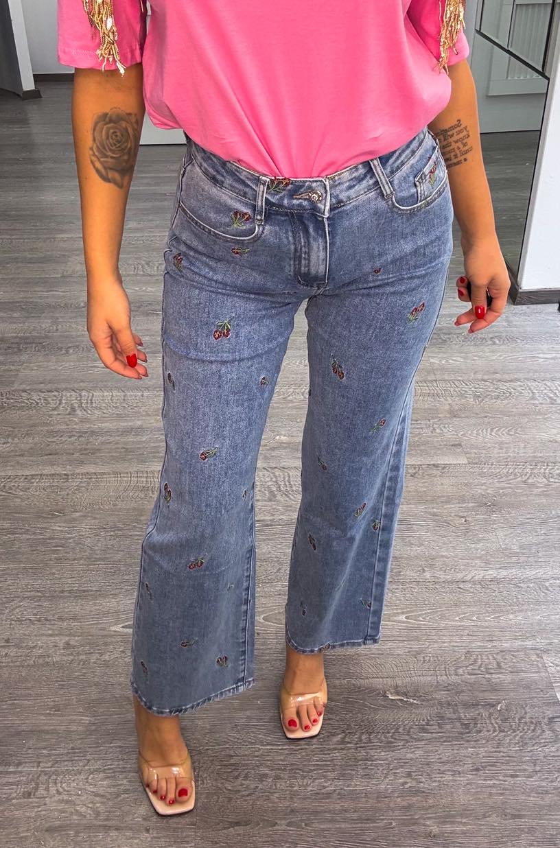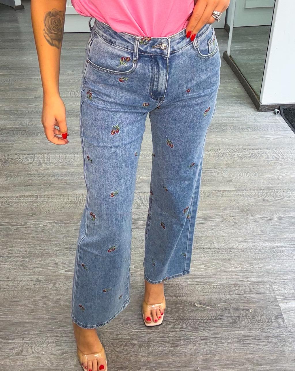 Jean παντελόνι με τριαντάφυλλα και στρας