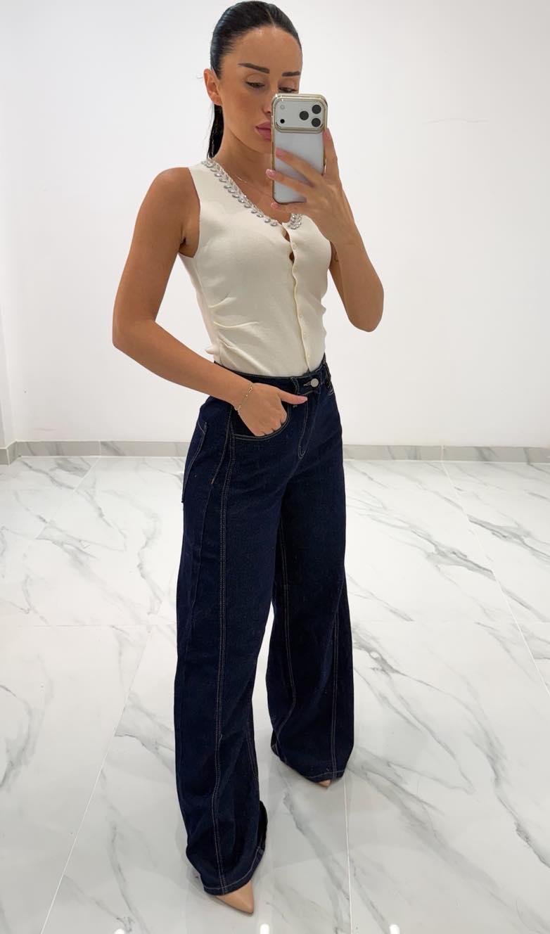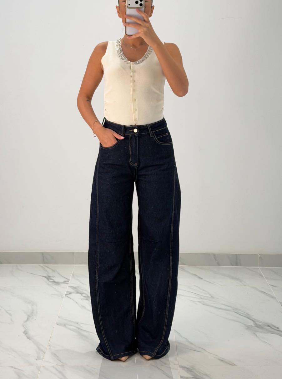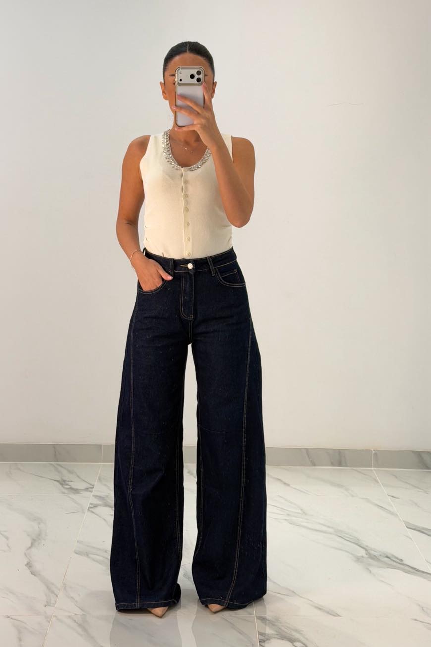 Jean παντελόνι ψηλομεσο καμπάνα με ραφές στα πλαϊνά