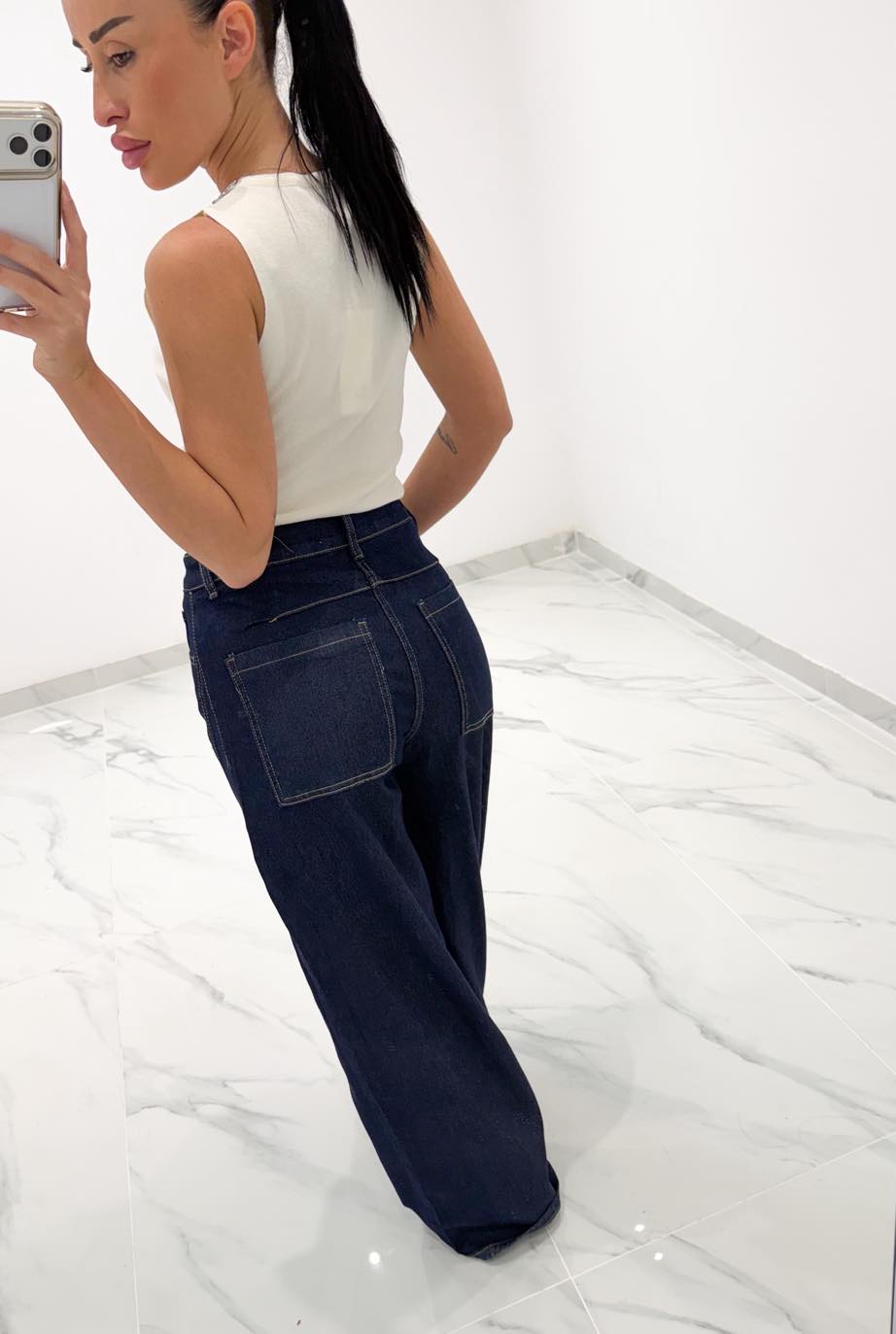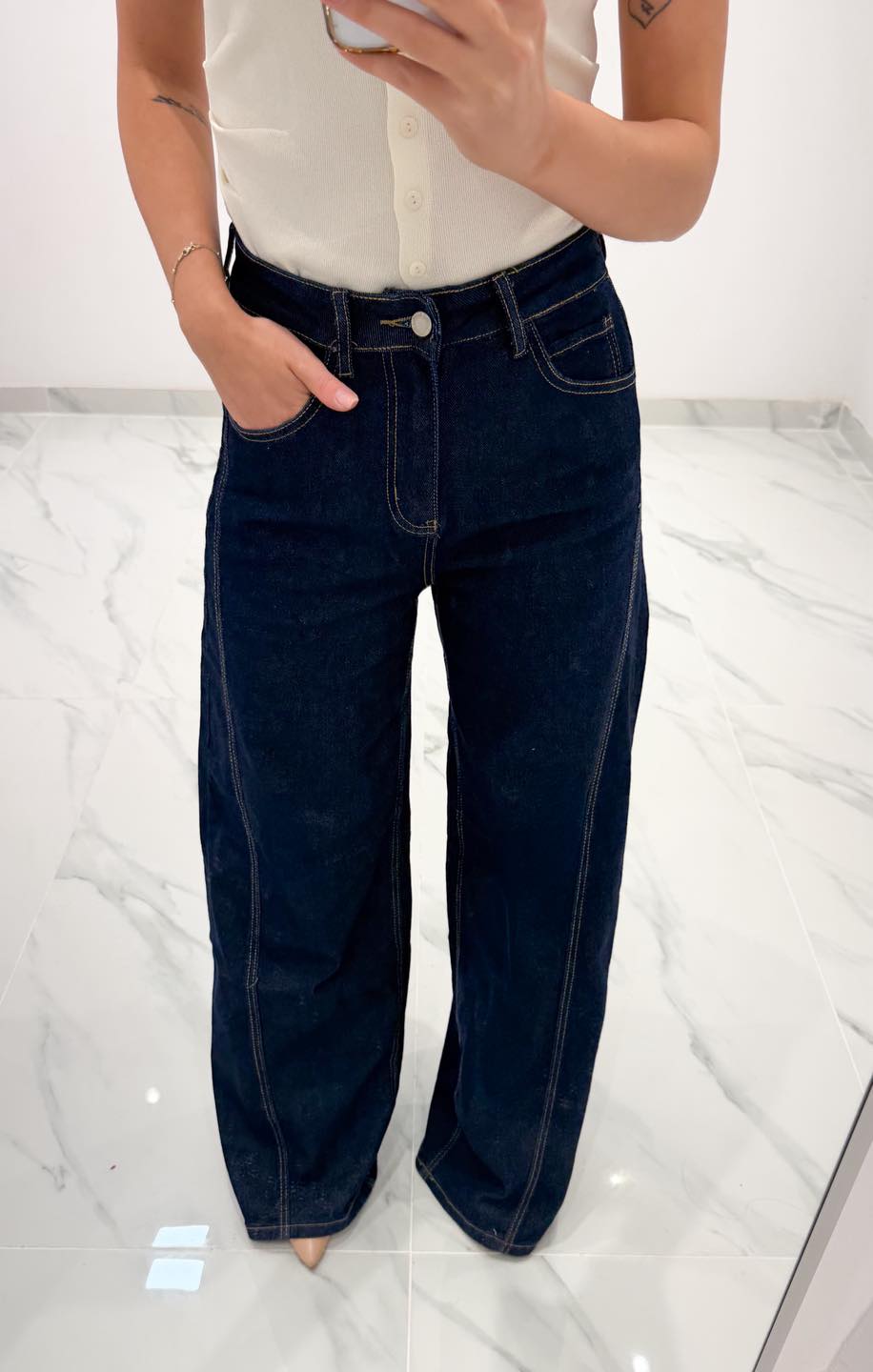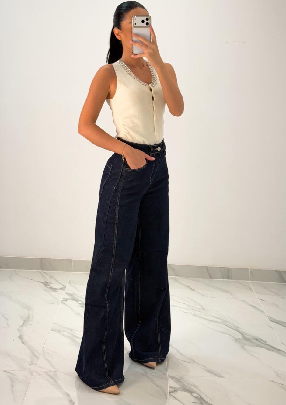 Jean παντελόνι ψηλομεσο καμπάνα με ραφές στα πλαϊνά