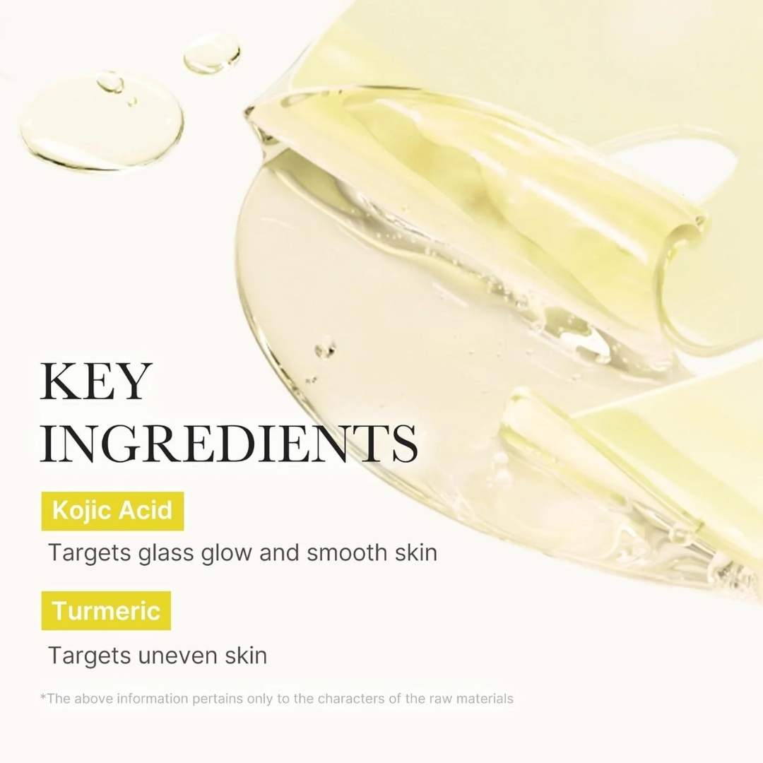 Προηγμένη Σύνθεση: Το κοχικό οξύ, ο κουρκουμάς και η νιασιναμίδη συνεργάζονται για να ενισχύσουν τη λάμψη του δέρματος και να φωτίσουν την επιδερμίδα, προσφέροντας μια φυσική λάμψη για την επίτευξη γυάλινης επιδερμίδας.